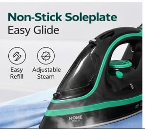 - Non-Stick Soleplate Glides smoothly over clothes without sticking, protecting fabrics and ensuring even heat distribution.