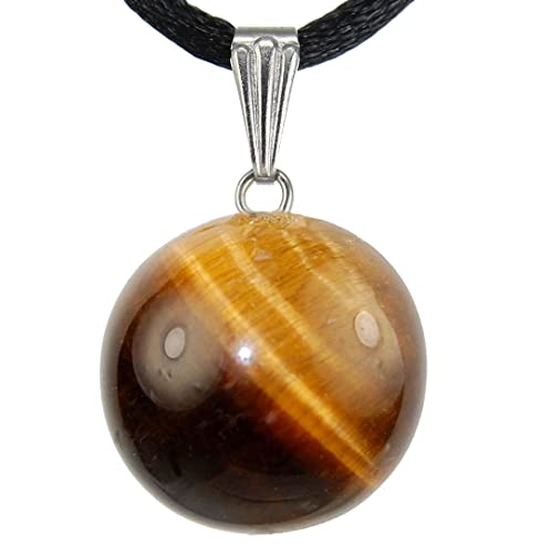 Steampunkers USA - مجموعة سيليستيال - 14 ملم كرة قمر كروية عين النمر، بني ذهبي - حبل اسود قابل للتعديل 20-22 انش - قلادة منحوتة من الاحجار الكريمة الكريستالية المصنوعة يدويا