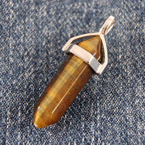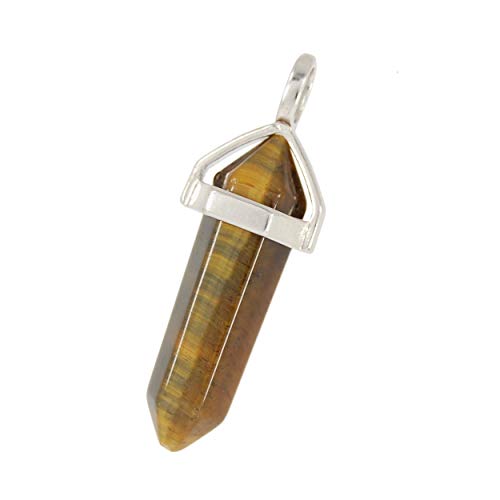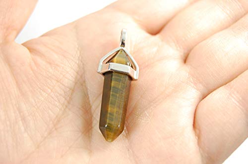 Steampunkers USA - Limited Edition - Hexagon World - 32mm Metal Banded Shaped Tigers Eye Golden Brown - Black Cord – Natural Stone Crystal Gemstone Pendant Necklace Charm