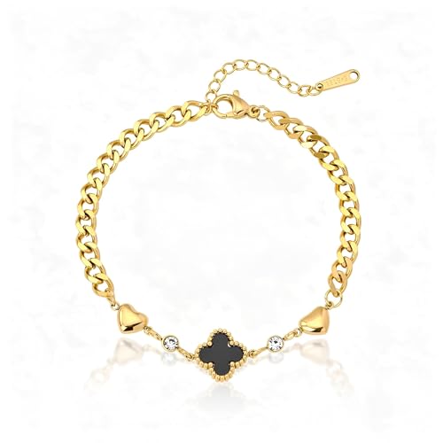 Generic - سلسلة ستيل - سوار متين من الستانلس ستيل الاسود باربع اوراق البرسيم للنساء يتميز بلمسة نهائية لا تفقد بريقها، نمط انيق مناسب للهدايا او الرفاهية الشخصية
