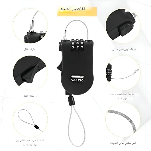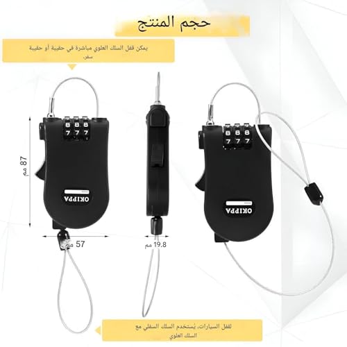 - Its retractable cable design makes it convenient for users to easily extend or retract the lock wire as needed, improving portability and ease of use during travel or daily activities.