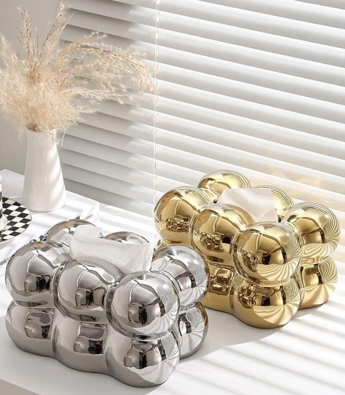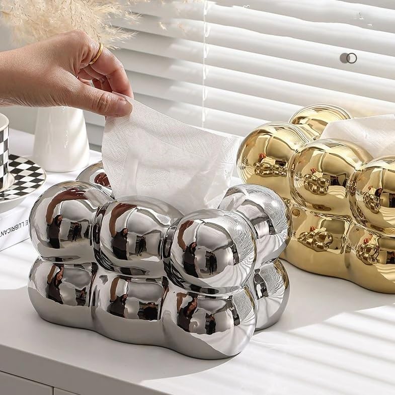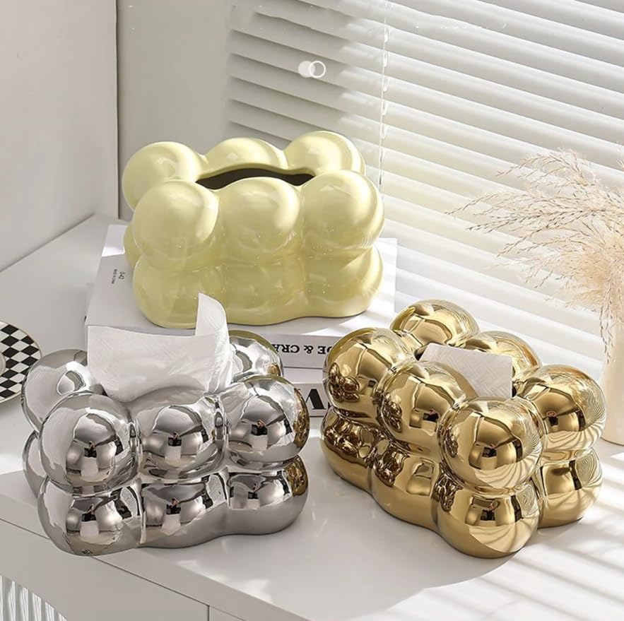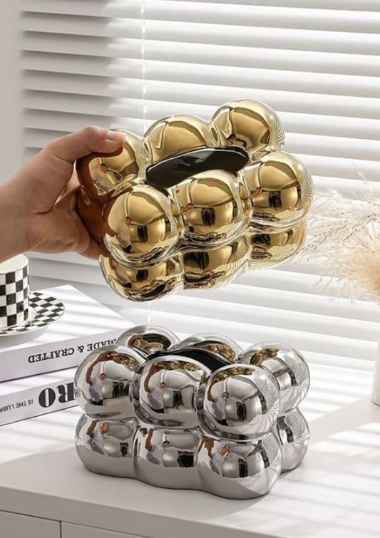 - This tissue box has an elegant bubble shape and a wonderful design that will add a wonderful touch to your home or office. Its wonderful design allows it to fit in any place, whether it be on a coffee table, dining table, nightstand, countertop, dresser, or desk.