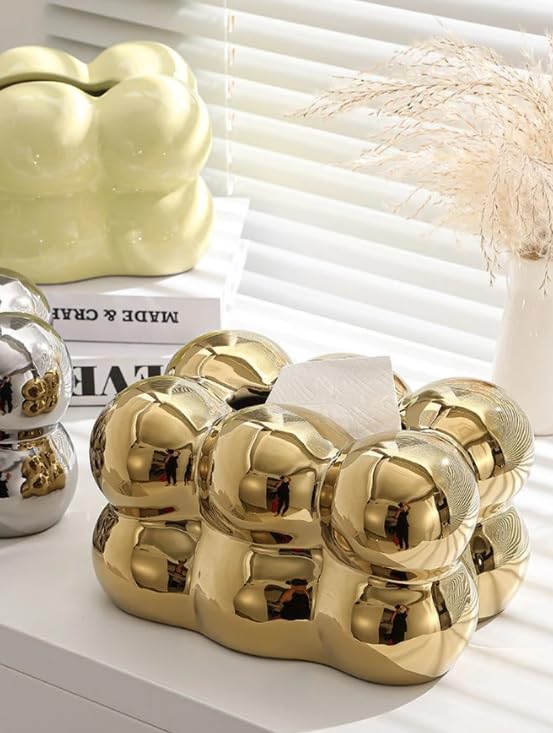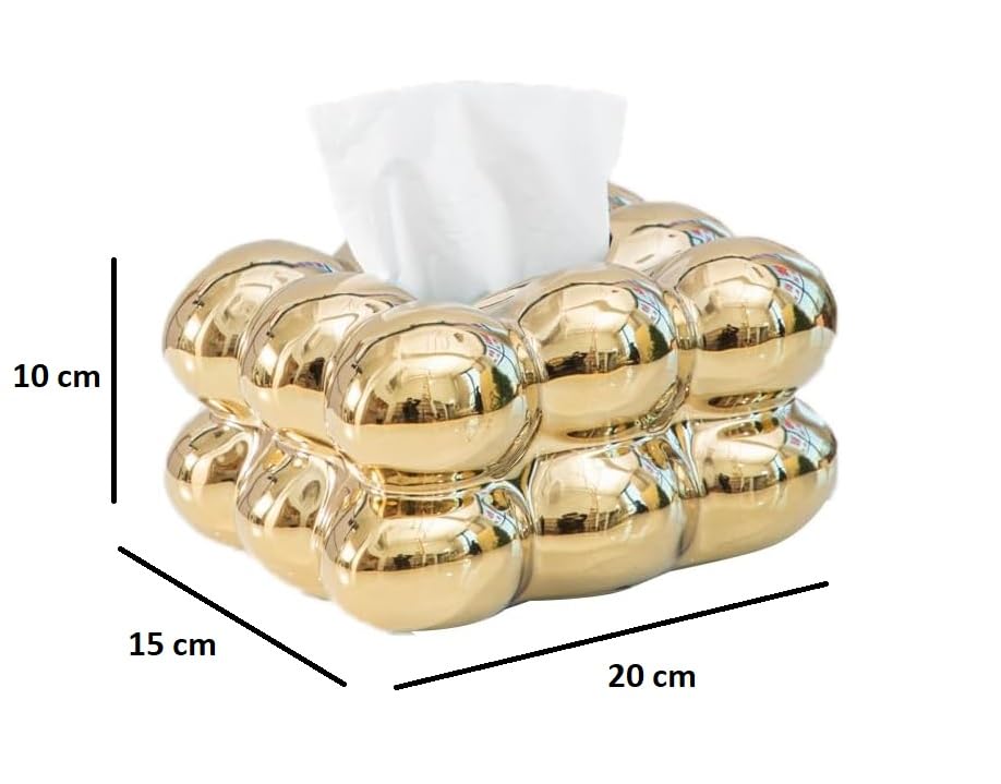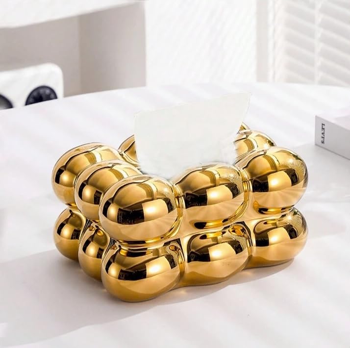 Generic - Stellar Stores Bubble Shape Ceramic Elegant Tissue Box for Livingroom Bedroom Office Hotels Restaurant Cafe, Home Decoration Napkin Holder for Coffe Table, Side Table, Dinning Table (Gold)
