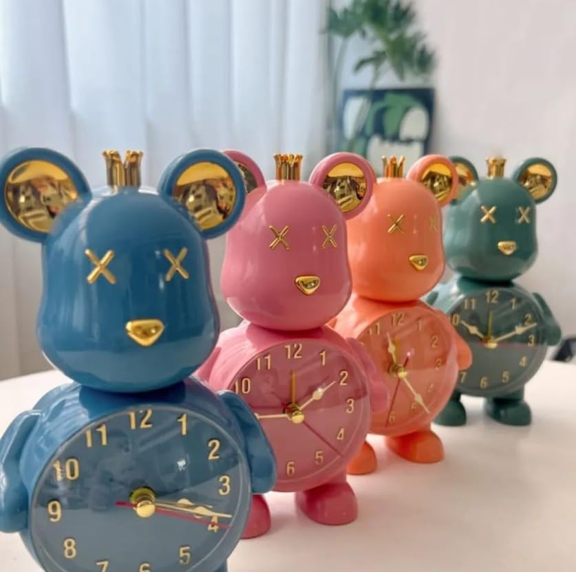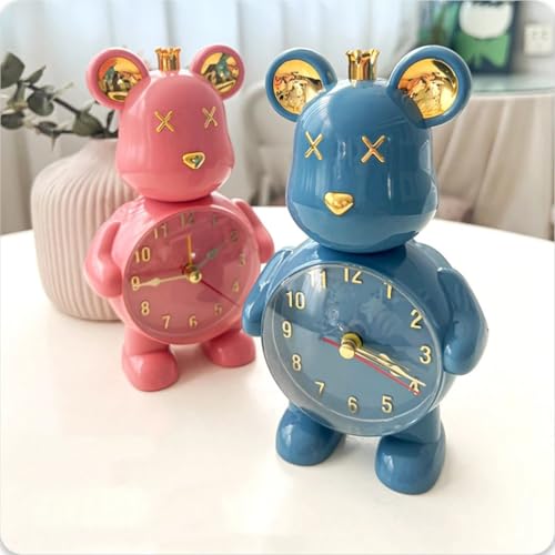 Generic - Stellar Stores Cartoon Shaped Bear Bedside Analogue Alarm Clock for Home, Bedroom, Living Roomm, Desk, Travel, Home Decoration (Pink)