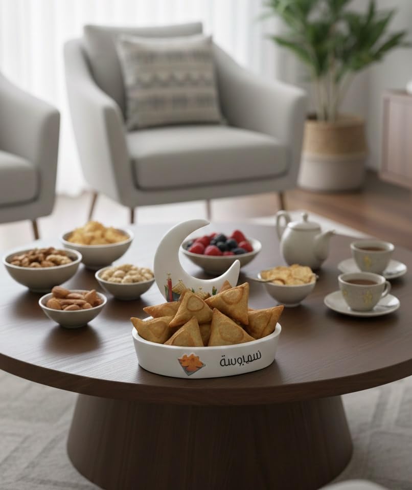 - Elevate Your Hospitality Add a touch of cultural elegance to your dining table with our uniquely designed Crescent Moon Sambosak Tray. Specifically crafted to showcase your favorite appetizers, this tray is more than just a serving dish, it’s a centerpiece that celebrates tradition and modern style.