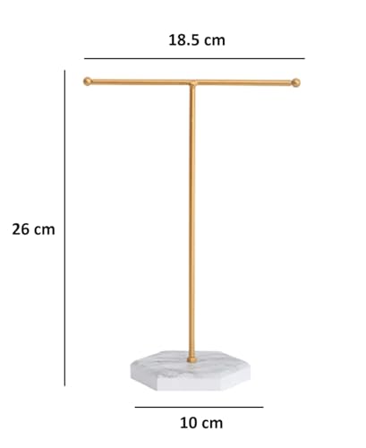 Generic - Stellar Stores Jewelry Necklace Display Stand, Earrings Display T Shaped Metal Holder Jewelry Organizer, Hanging Necklace Rack with Marble Base for Bracelets, Pendants, Chains (Gold Metal White Base)