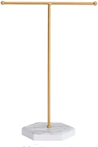 - Excellent material the jewelry organizer stand has a marble base with a beautiful pattern and is made of metal that resists rust and corrosion for an extended lifespan. With its elegant, sleek form and simple style, the T-shaped metal necklace holder is a stylish addition to your place.