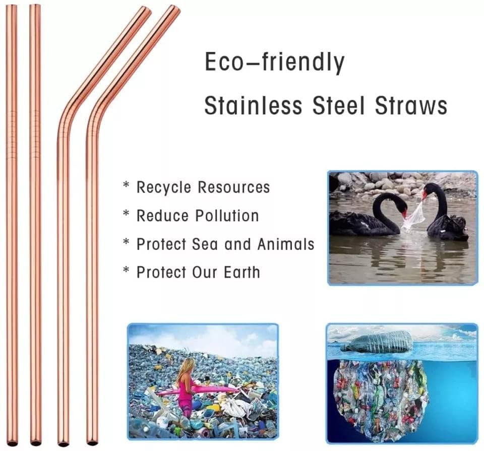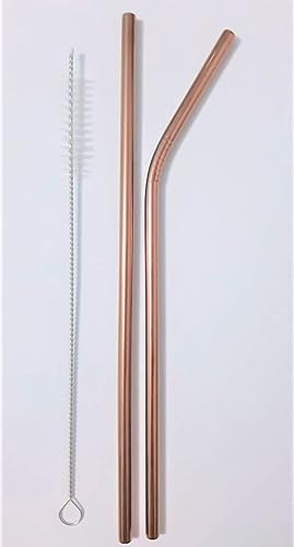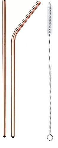 Generic - Stellar Stores Stainless Steel Reusable Straws for Juices, Cold Beverages, Shakes, Drinkware, Eco Friendly, Reusable, For Party, Great Gift, Set of 3 (Rose Gold)