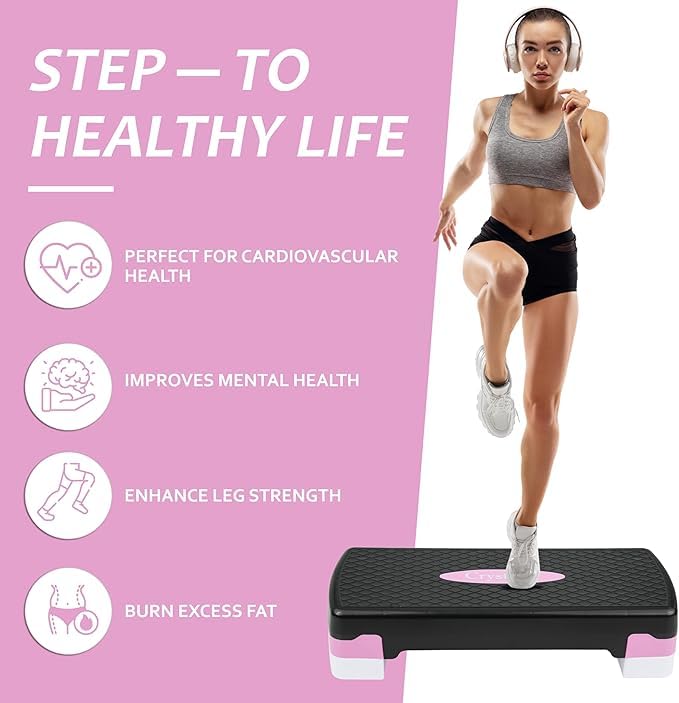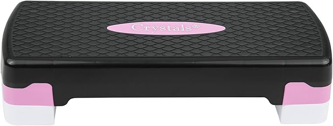 Generic - منصة تمارين رياضية للمنزل وصالة الالعاب الرياضية من كريستالز - منصة خطوات هوائية مع سجادة خطوة ومخطط دليل تمرين مجاني - خطوة لياقة لليوغا وتمارين القلب والوزن - ارتفاع قابل للتعديل من خطوتين (10/15 سم
