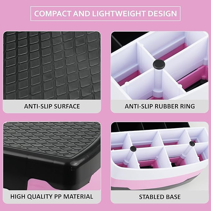 - سطح غير قابل للانزلاق: توفر المنصة المتينة وسجادة الخطوات المتضمنة أرضية آمنة لأداء التمارين بأمان على معظم أنواع الأرضيات في الداخل أو الخارج.
