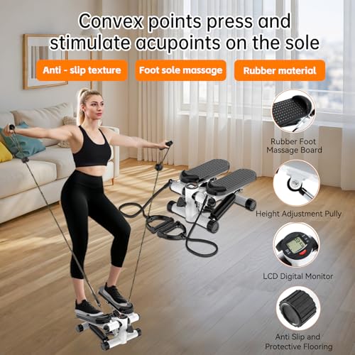 Ecogou - جهاز ستيبر صغير للتمارين في المنزل مع أحزمة مقاومة من ايكوجو - جهاز هادئ وخفيف للخطوات، لرفع المؤخرة، ونحت الجسم، وتمارين الكارديو، معدات لياقة بدنية صغيرة للمساحات الصغيرة