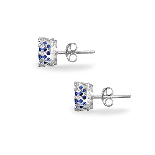 B. BRILLIANT - Sterling Silver Polished Blue 6mm Round-cut Crown Stud Earrings Made with European Crystals