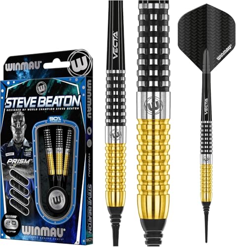 Generic - Steve Beaton Darts, 24g, 90% Tungsten, Black and Gold Dual Coating, with Prism Flights and Shafts