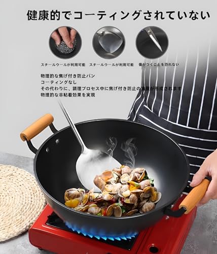 - The ancient cast iron wok features a robust thick design engineered for exceptional durability and abrasion resistance, providing home cooks with unparalleled convenience and longevity in daily culinary tasks. The ergonomic binaural handle system ensures a comfortable, secure grip for effortless lifting, safe placement on stoves, and convenient maneuvering of heavy ingredients without strain or accident during intense cooking sessions.
