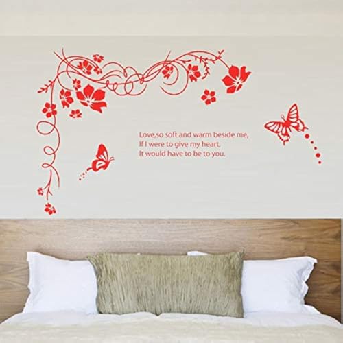Generic - StickieArt - Red Butterfly Flowers Wall Decal - Large - 60 x 90 cm - STA-188