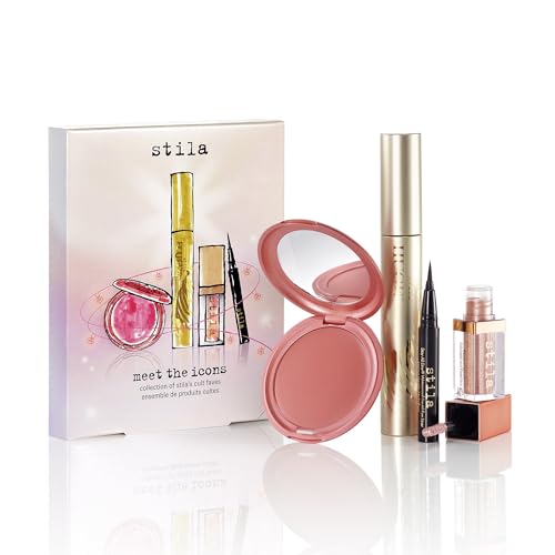 - تحتوي مجموعة ميت ذا ايكونز هذه من أفضل منتجات ستيلا على ماسكارا ضخمة اكستريم لاش بحجم كامل 13 مل، وكريم ليليوم قابل للتحويل مزدوج للشفاه والخدود بحجم كامل 4.25 جرام، وقلم تحديد عيون سائل مقاوم للماء يدوم طوال اليوم بحجم 0.25 مل مناسب للسفر، وايشادو سائل مقاوم للماء بحجم 2.25 مل مناسب للسفر من كيتن شيمر اند جلو.