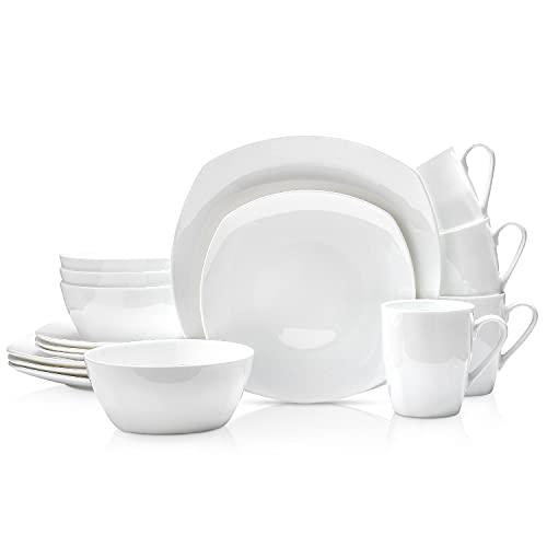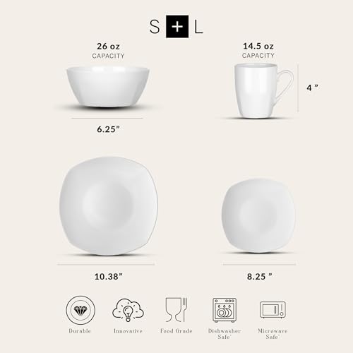 Stone Lain - Stone Lain Bone China Soft Square 16 Piece Dinnerware Set, White