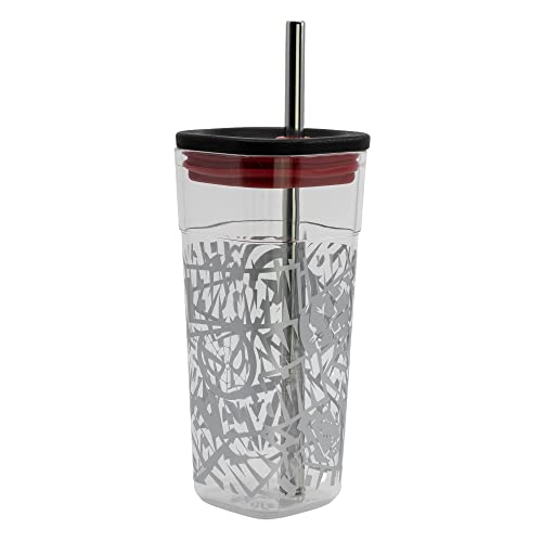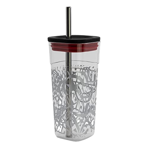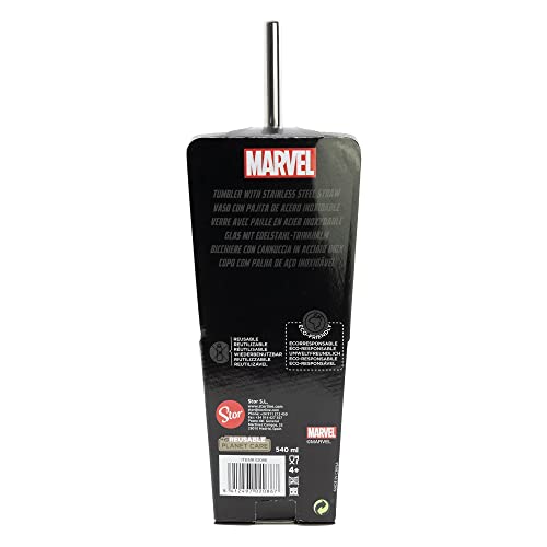• كوب بلاستيكي طويل مكعب مع شفاطة من الفولاذ المقاوم للصدأ بسعة 540 مل من مارفل