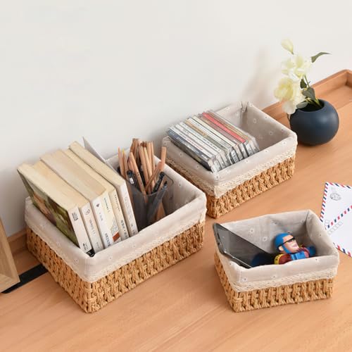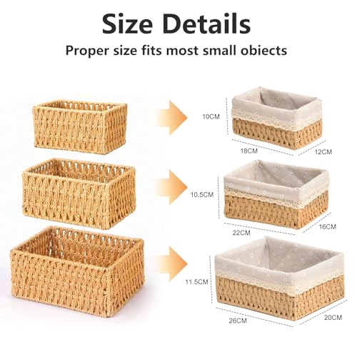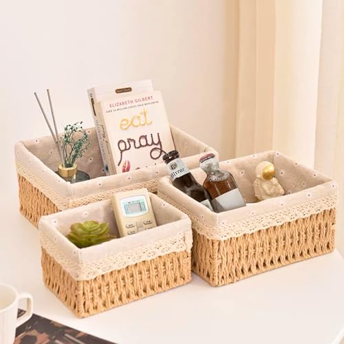 Zephyrize - مجموعة سلال تخزين مضفرة متعددة الوظائف مصنوعة من ورق معاد تدويره قابل لإعادة الاستخدام، مناسبة لغرفة النوم والمطبخ والحمام، 3 قطع