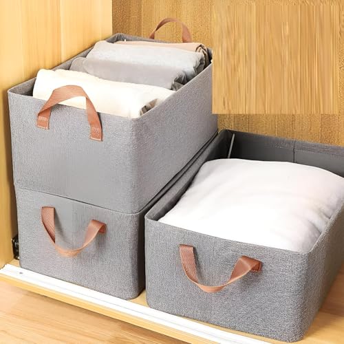 Generic - صندوق تخزين - منظم قماشي كبير قابل للطي بمقابض للألعاب والكتب والرفوف، تصميم متين لسهولة التنظيم (3 قطع)