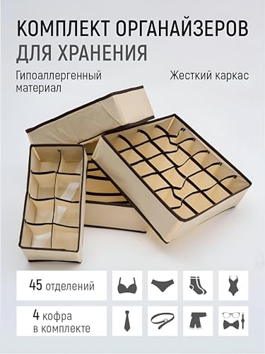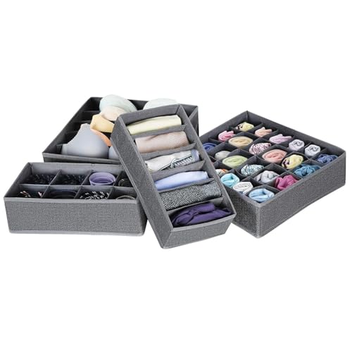 - 4 صناديق تخزين متعددة الاستخدامات مع خلايا متعددة تحافظ على الجوارب والأوشحة والسراويل الضيقة والإكسسوارات منفصلة بأناقة مع توفير مساحة خزانة ثمينة يوميًا.
