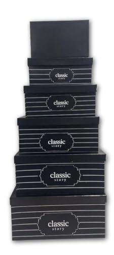 Generic - صناديق تخزين - صناديق هدايا كلاسيكية مزخرفة متداخلة، مجموعة من 6 قطع من علب التنظيم القابلة للتكديس بتصميم مخطط للمنزل والمكتب (أسود)