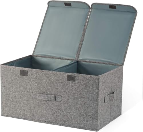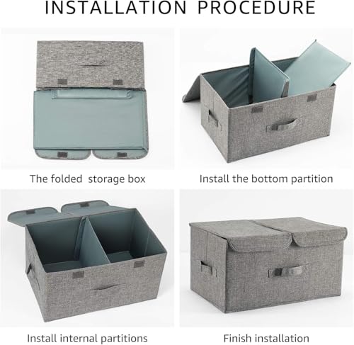 - تصميم فريد من نوعه: يأتي بأبعاد 44 × 28 × 24 سم. يحتوي صندوق التخزين القماشي على فاصل وسط قابل للإزالة للتخزين المكون من قسمين، والذي يمكن أن يميز تخزين الأشياء بشكل معقول، ويمكن فتح الغطاء الواحد بشكل مستقل إذا لزم الأمر.