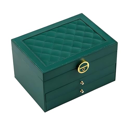 Generic - صندوق تخزين- علبة مجوهرات متعددة الوظائف من جلد صناعي مع مساحة واسعة وفتحات مخصصة للخواتم والحلقان والسلاسل بتصميم أنيق ومحمول (أخضر)