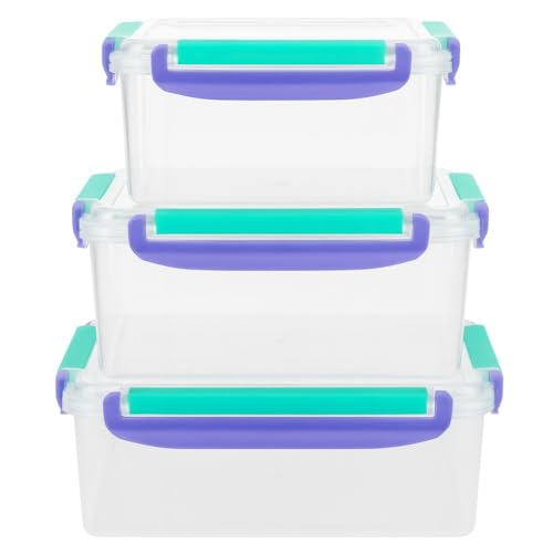 Generic - Storage Container Set 3 Pcs Triangle Refrigerator Crisper Box With Airtight Lid Microwave Dishwasher Safe Easy Clean Food Grade Plastic For Vegetables Fruits Snacks 500/1000/1500ml (Purple)