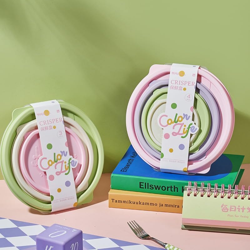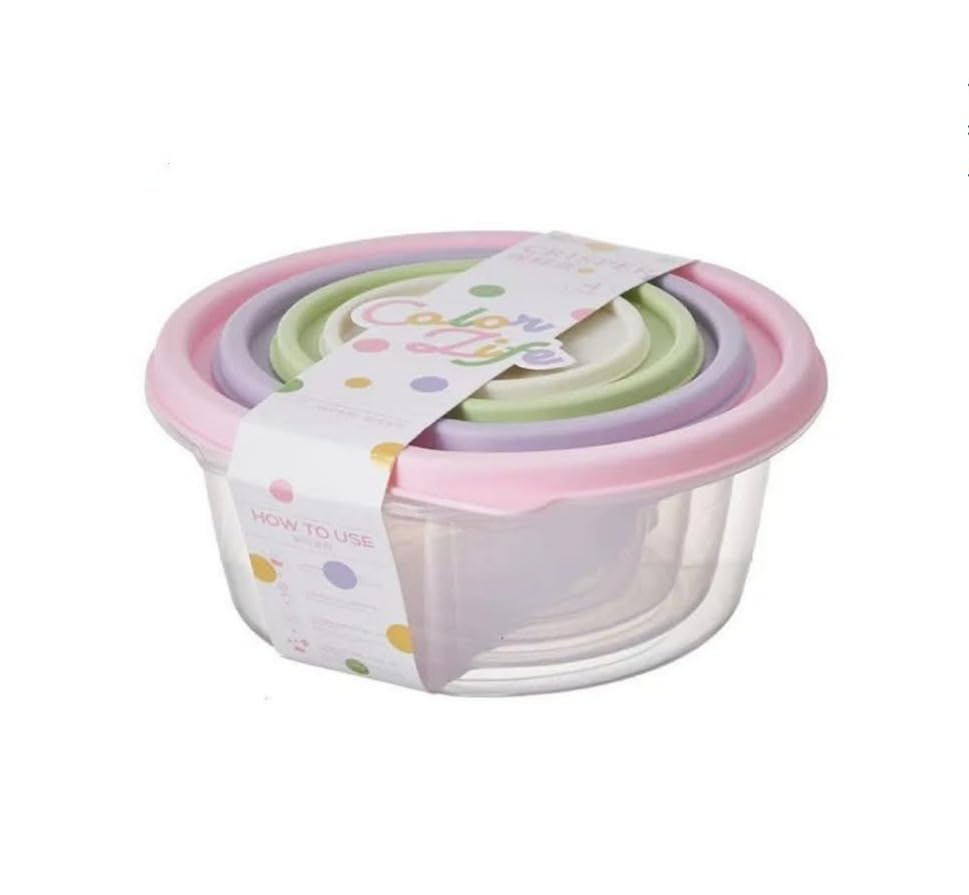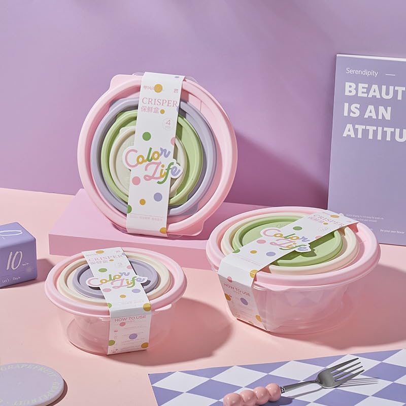 Generic - Storage Container Set - 4 Pcs Refrigerator Crisper Box with Airtight Lids, Microwave Safe for 3 minutes, Leak Proof, Easy to Clean, Round Food Grade for Vegetable & Fruit (Pink)