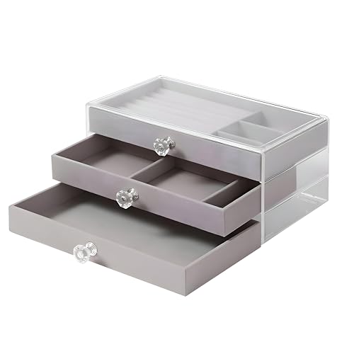 - Featuring a three-drawer layout with independent trays, this organizer is designed to accommodate different types of jewelry from delicate chains to larger bracelets. Each drawer has a unique compartment design, and the adjustable dividers allow flexibility so even bulkier accessories fit securely, maintaining both protection and order.