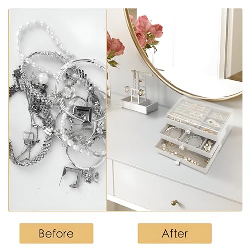 - Crafted with smooth and transparent acrylic, this jewelry organizer presents an elegant appearance that combines modern aesthetics with a polished finish. Its refined style transforms it into both a functional accessory and a decorative element that adds sophistication to any room while highlighting the natural beauty of your jewelry pieces.