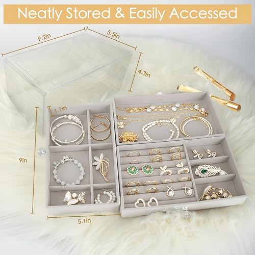 - The transparent exterior allows you to easily view your rings, earrings, necklaces, and bracelets at a glance without the need to open or search inside. Each piece of jewelry becomes part of a beautiful showcase, turning your collection into a stylish display that enhances your personal space while maintaining convenience in daily selection.