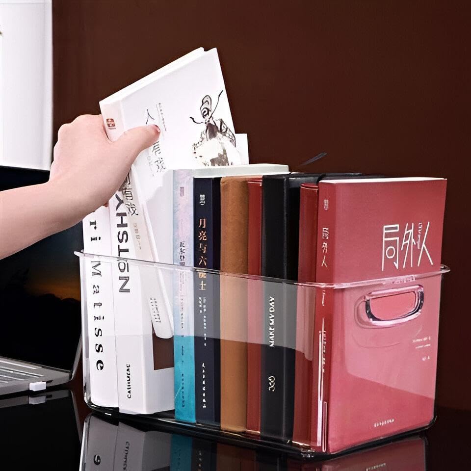 - يتيح لك التصميم الشفاف رؤية محتويات الصناديق بسهولة، مما يسهل عليك العثور على الكتاب أو المجلة التي تبحث عنها.