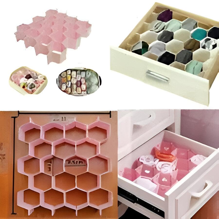 Generic - Storage Grid - Adjustable Honeycomb Drawer Organizer Ideal for Socks, Scarves, and Lingerie with Flexible Interlocking Panels for Custom Fitting and Bright Color Options