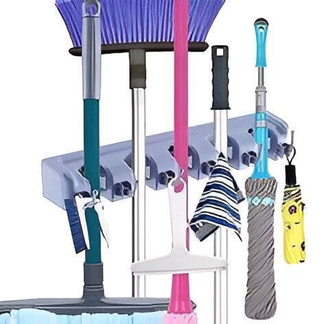 generic - Storage Hanger - Heavy-duty garage storage hanger with five hole slots and six hooks, wall-mounted design to hold 11 standard tools for orderly mop, broom, and tool organization.