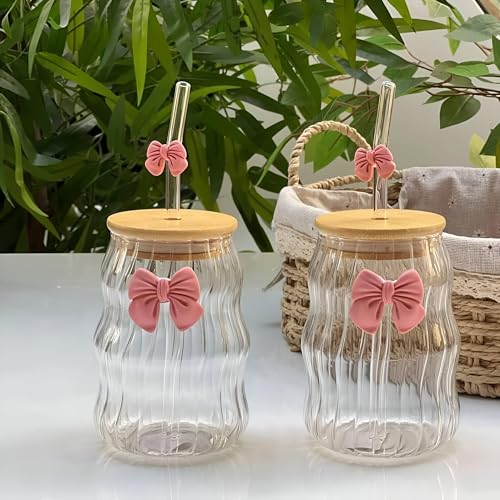 Generic - برطمان تخزين - زجاج ثلاثي الأبعاد على شكل فراشة وردية مع فيونكة، تصميم متين متعدد الالوان 550 مل، مناسب للمشروبات الساخنة والباردة، رائع لأعياد الميلاد وهدايا النساء