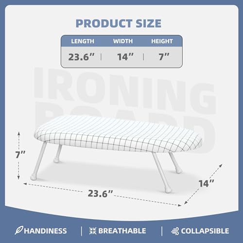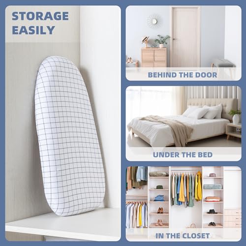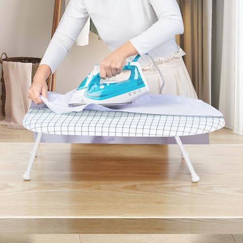 STORAGE MANIAC - لوح كي لسطح الطاولة مع ارجل قابلة للطي، لوح كي عريض للغاية مع غطاء قطني، لوح كي صغير محمول للخياطة وغرفة الحرف اليدوية والمنزل والسكن الجامعي من برج التخزين، أبيض