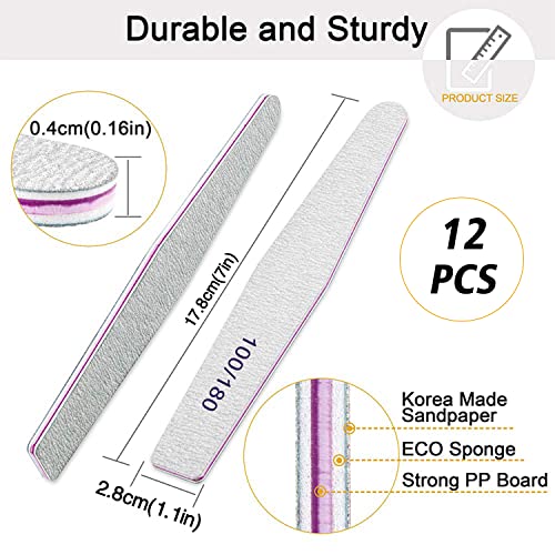 STORAGE MASTER - Storage Master Professional Nail Files, for Natural Nails 100/180/240 Grit Nail Files for Acrylic Nails 12pcs Fine Grit Nail File Manicure Tools Coarse Fingernail Files (100/180 Grit)