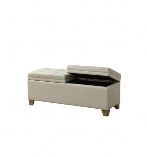 Generic - Storage Ottoman with Lid Lift Stool, Beige, Upholstered Fabric, Wooden Legs, with Decorative Buttons
