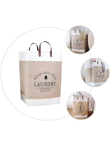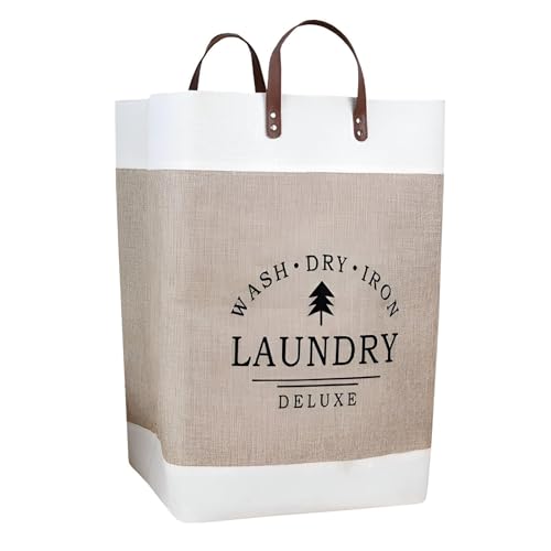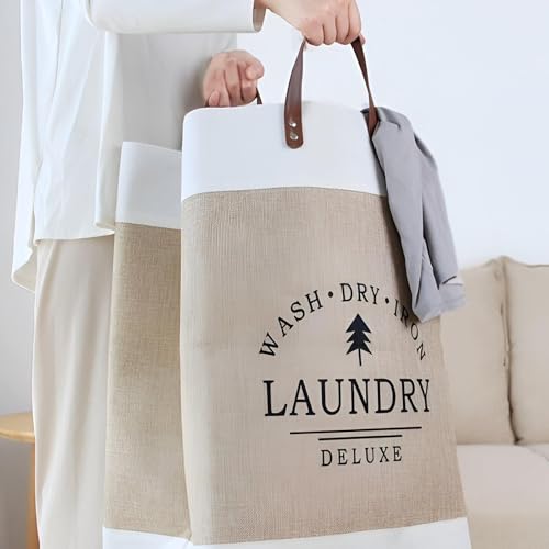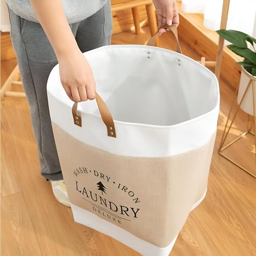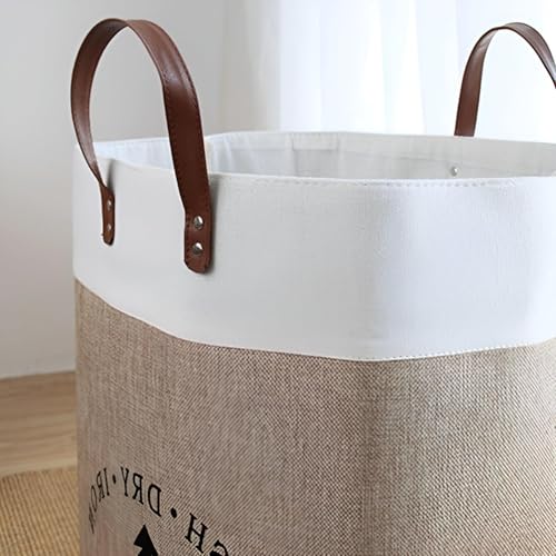 Generic - Storage Solution - Large Collapsible Laundry Bag with Cotton Lining, Leather Handle, 50cm x 35cm, Ideal for Clothes and Toy Organization