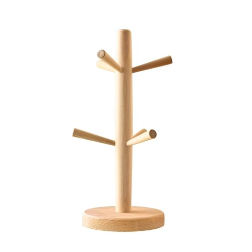 Generic - STORAGE TOOL - Organize your kitchen with this creative wooden cup holder, featuring a unique design that allows your cups to be dried and stored efficiently, with six hooks for added convenience.