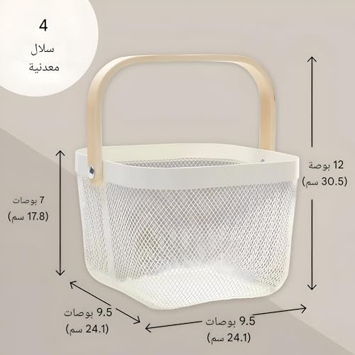 Generic - Storage - Versatile Kitchen Pantry Storage Basket with Charming Wooden Handle, Crafted from Square Metal Mesh for Easy Organization (9.5 x 7 Inch, White) - Perfect for Daily Use (4PCS)