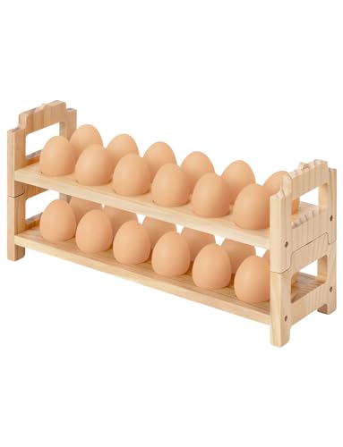 generic - حامل بيض من ستوريج ووركس، حامل بيض طازج يوضع على سطح الطاولة يتسع لـ 24 بيضة، سلة بيض خشبية قابلة للتكديس للثلاجة والمطبخ، سلة بيض بطبقتين مع مقابض، صينية بيض