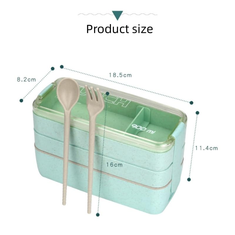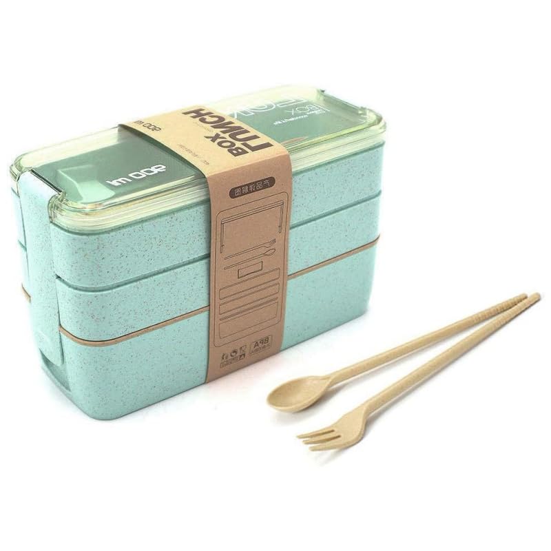 Star-wood - مجموعة لانش بوكس بينتو صغير صديق للبيئة مع ملعقة، علب تحضير الوجبات 3 في 1 قابلة للتكديس للأطفال والبالغين (أخضر)