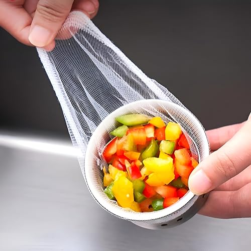 - Includes 100 disposable mesh filter bags, each 9×9 cm, offering about a month’s supply for daily family use and making kitchen sink cleaning simple and hygienic.
