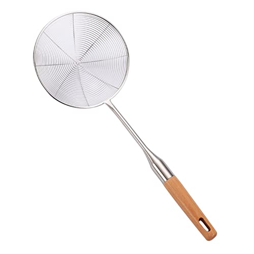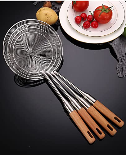 NORHOR - Strainer, Skimmer Spoons,Spider Strainer Skimmer Ladle for Cooking and Frying, Cooking Utensils Strainer with Wooden Handle, Wire Skimmer Strainer Slotted Spoon for Kitchen Pasta Spaghetti. (14cm)