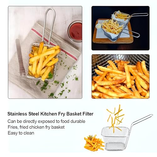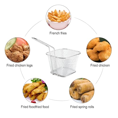 Generic - مصفاة ستتخلص من الزيت بسهولة - سلة مطبخ صغيرة من الستانلس ستيل مثالية لحلقات البصل العميقة وشرائح البطاطس والخضروات مع تصريف ورفع سريع (قطعة واحدة)