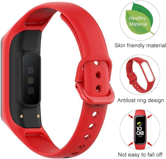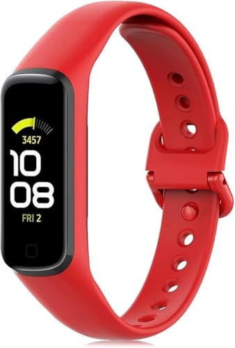 ELMO3EZZ - سوار من السيليكون الناعم مزود بمسامات للتهوية بتصميم قابل للتعديل من المعز، مناسب لجهاز تتبع اللياقة البدنية سامسونج جالاكسي فيت 2 (SM-R220) للنساء والرجال (بدون جهاز تتبع)، لون أحمر