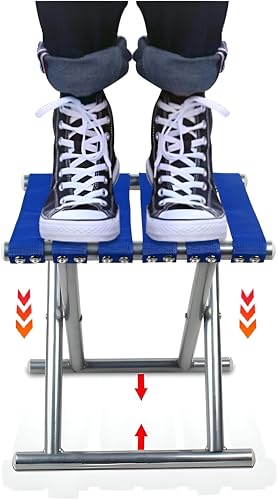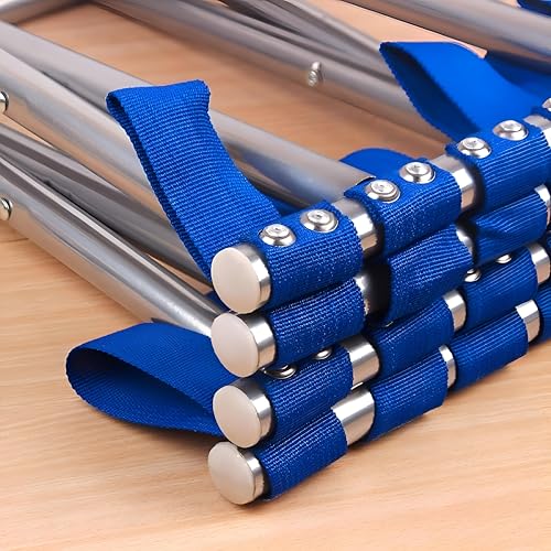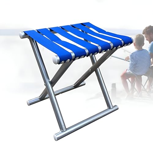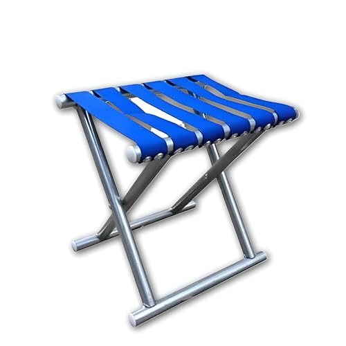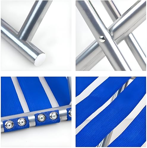 Generic - مقعد مربوط - مقعد محمول مبتكر باللونين الأزرق والفضي مع إطار معدني قوي وأشرطة منسوجة مريحة لتعزيز الدعم.